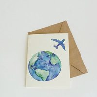 Kartka okolicznościowa - Happy Birthday kula ziemska + samolot